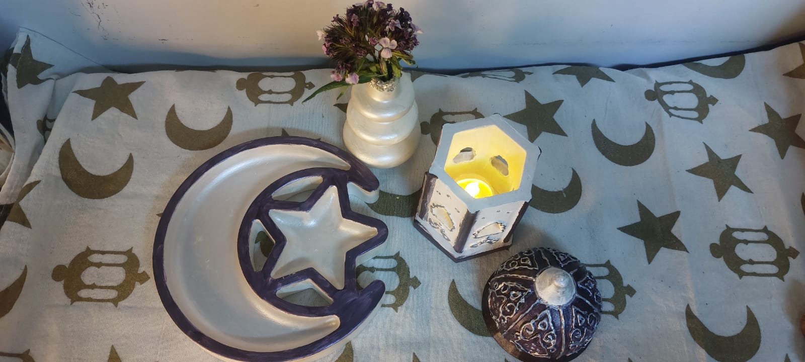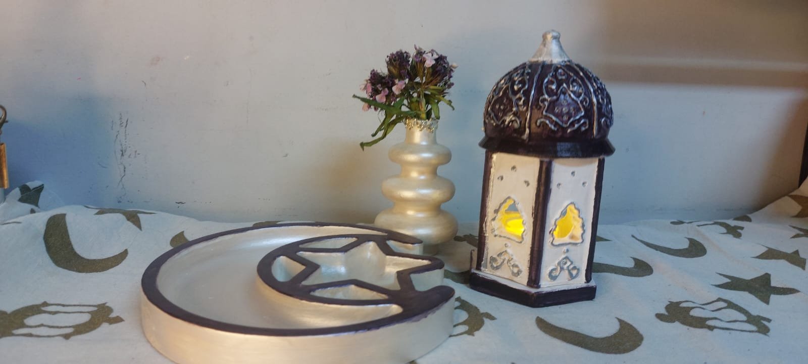 باكدج تحفه فازه مع هلال ونجمه مع فانوس بأضاءه كل ده ب ٣٤٥ج