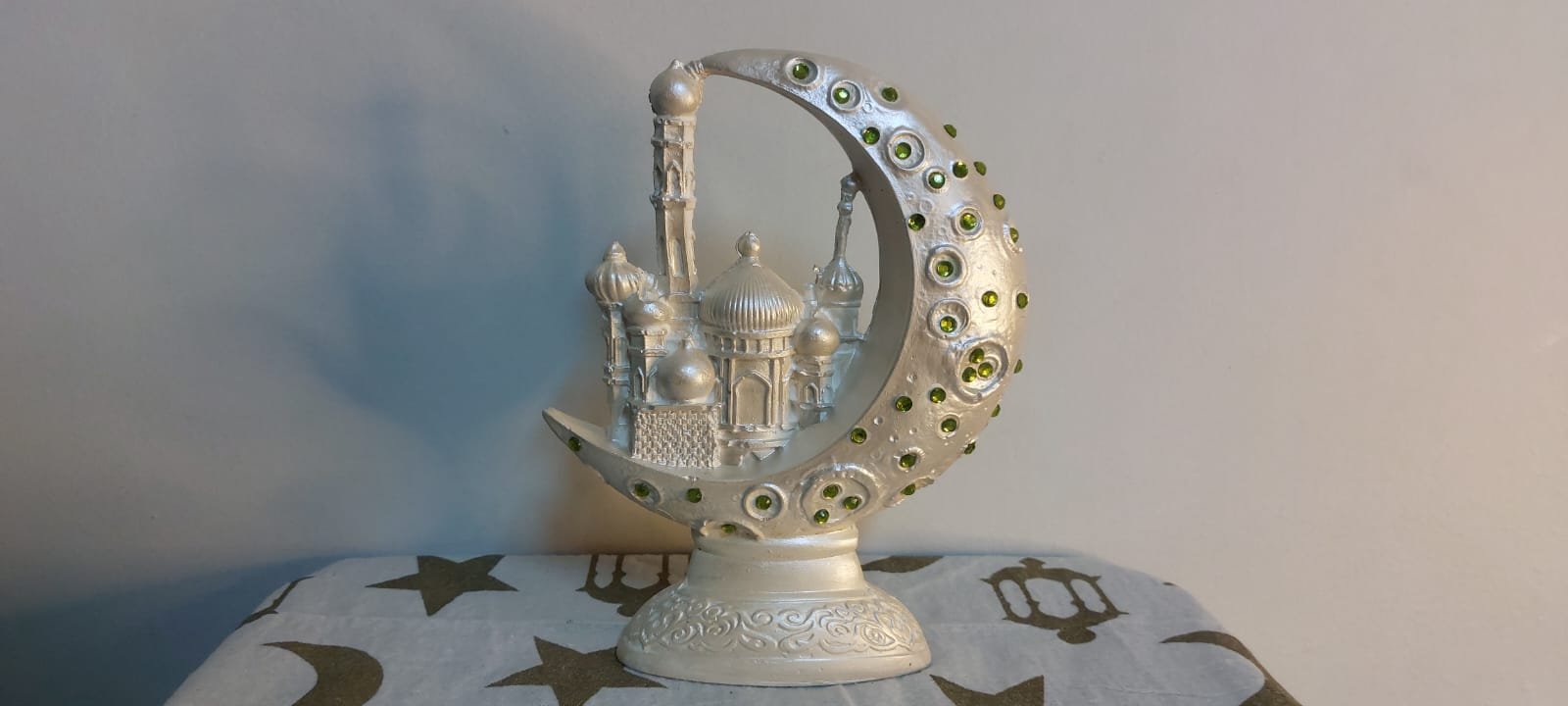 قطعه ديكور انيقه علي شكل هلال يحتضن مسجد بتفاصيل دقيقه ولمسة فخامة🌙