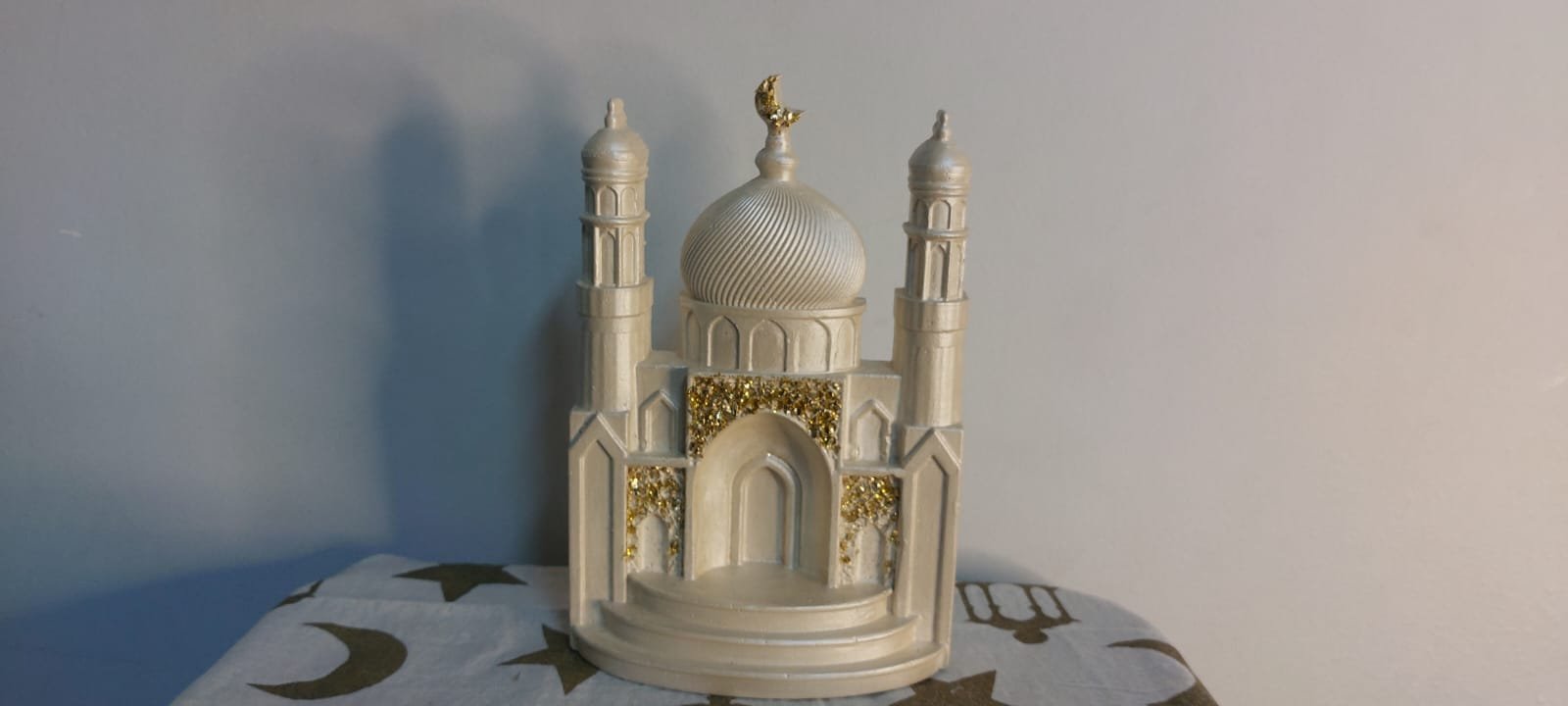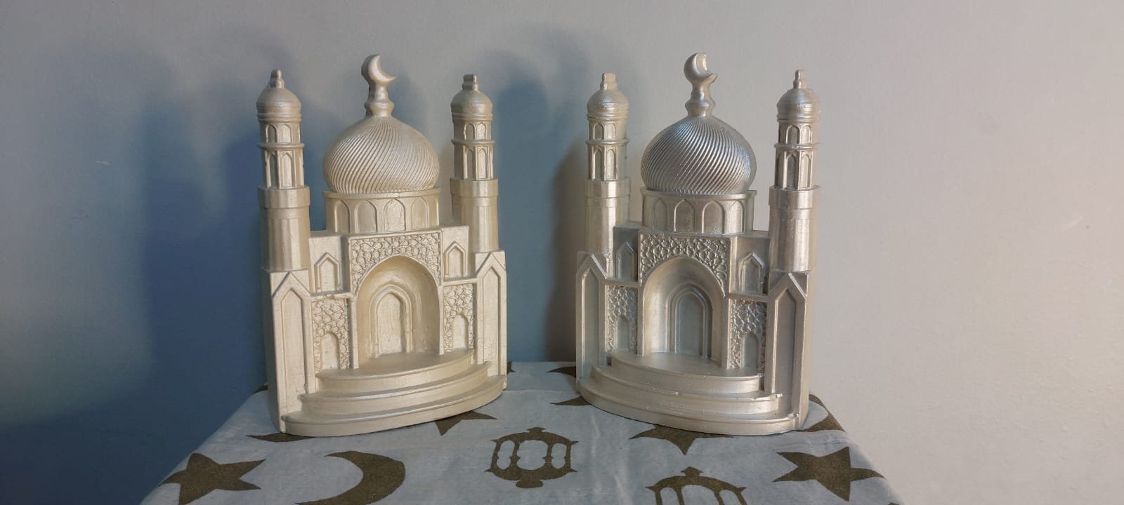 جامع بمأذنتين بتصميم طراز معماري إسلامي مع هلال في الاعلي ومجسّم من الواجهة الأمامية فقط، قطعة ديكور منزلي،مناسب كهدايا،زينه رمضان والعيد
