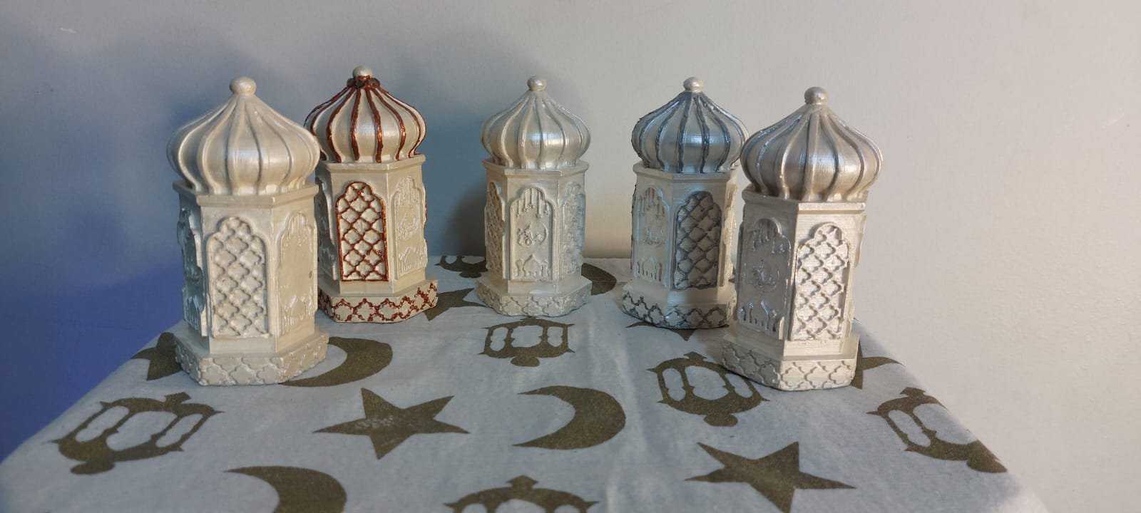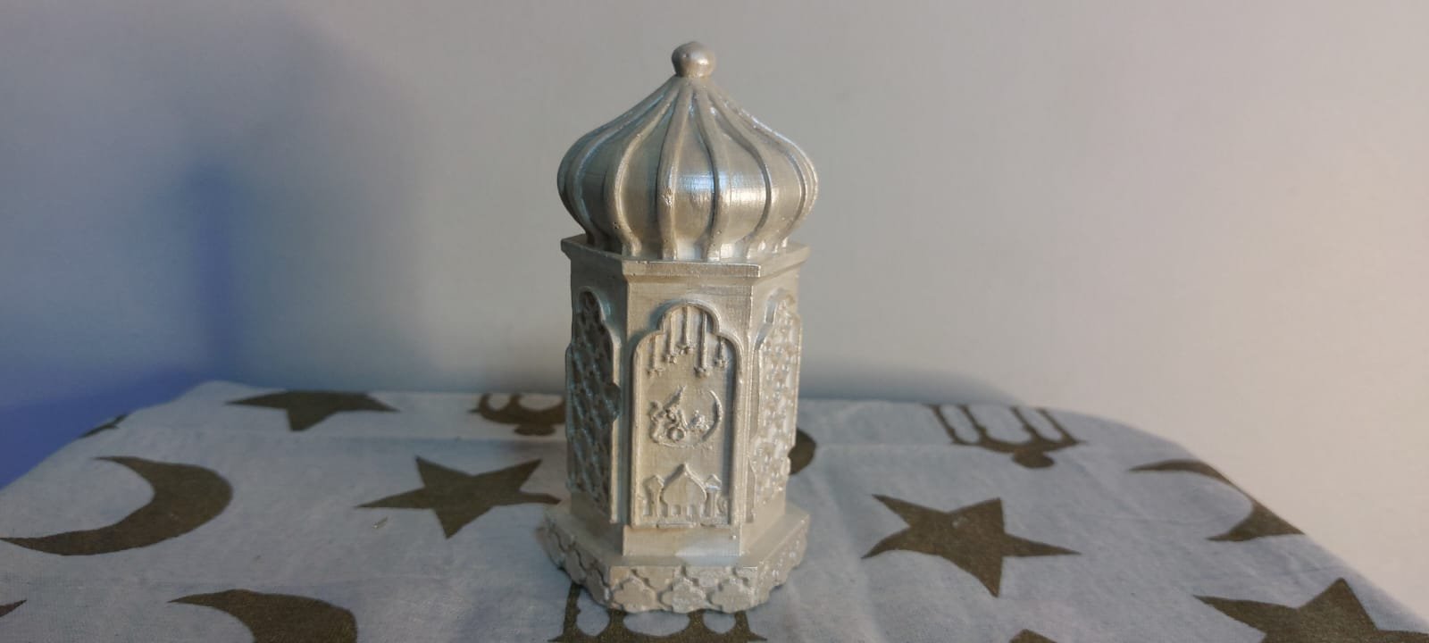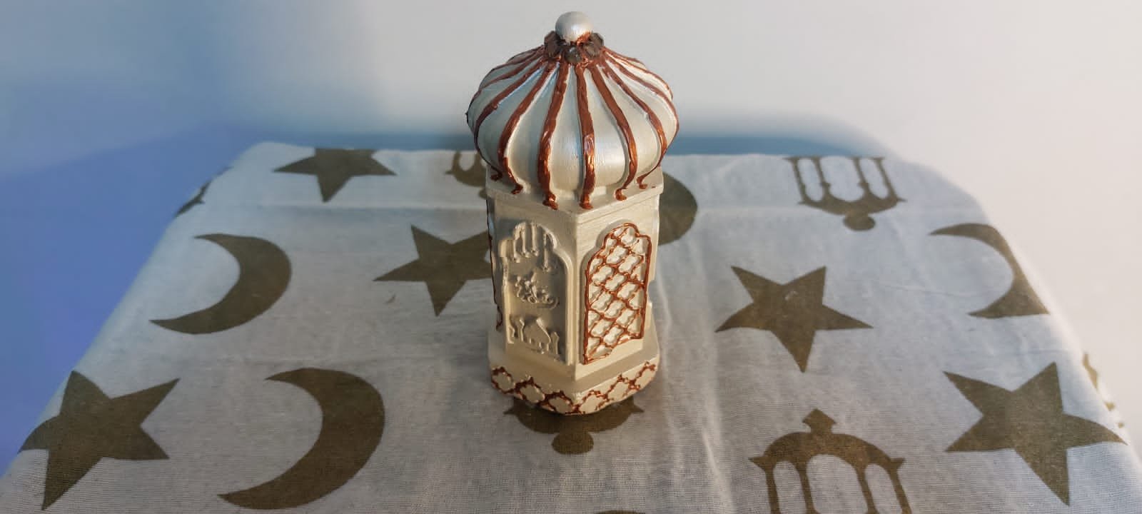 فانوس صغير مجسّم يمزج بين الفن الإسلامي واللمسه العصرية ،مثاليه كقطعه زينه او كهديه مميزه في شهر رمضان والاعياد